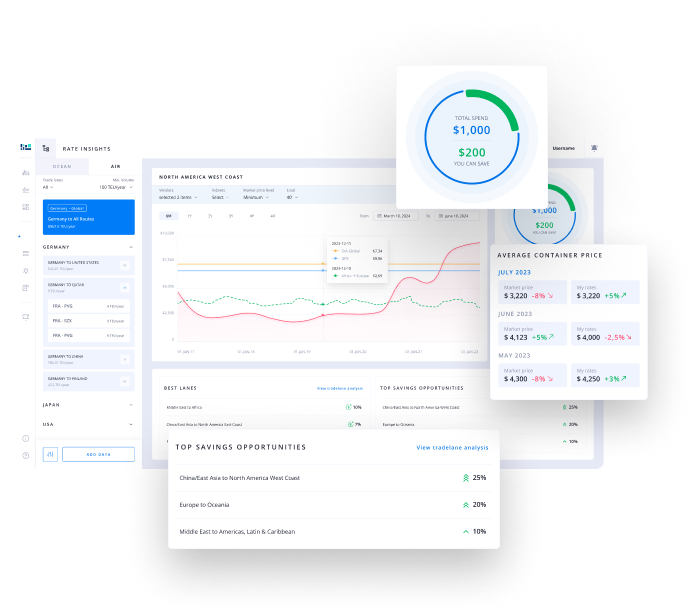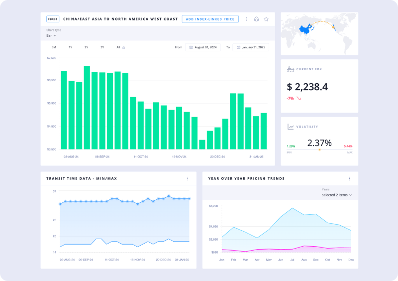 Freightos Terminal™ delivers real-time market intelligence, rate benchmarking, and lane-specific insights, empowering you to optimize procurement, reduce costs, and stay ahead of global freight volatility.